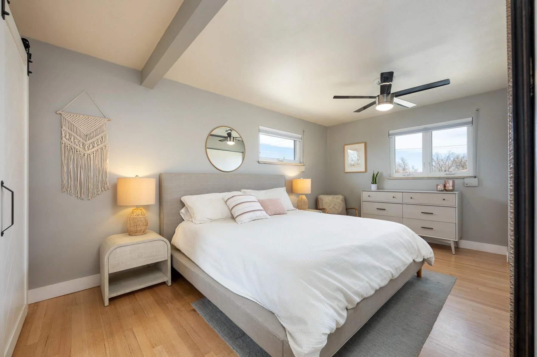 On the other side of this home is the oversized primary bedroom, with its own, aLao oversized primary en suite bathroom (double vanity+rain-head shower), and a second bedroom! As well as a wonderfully updated full bathroom with bright, natural light! Downstairs is the full, finished basement in this extremely well cared for home. Here there is a wide open area for a second family room/living room and hobby/play/work-out area! There are also three (!) more bedrooms in the basement, as well as another full bathroom! Back upstairs through the back door (which could be used as a lock off for a seperate basement entrance for long term guests or as a rental), is the perfectly manicured backyard! Re-sodded, sprinklered, and a rock boarder allow for use, and minimal maintenance of this huge yard! With the home being the end cap house, there is only one neighboring house, allowing for an extremely private yard! In addition to all the cosmetic updates, there is a new HVAC system! This house has it all, plus a location that can’t be beat; A block from the walking paths+many parks of the Central Park. Minutes from Stanley Marketplace. Walking distance to newly renovated Moorehead Rec Center/Pool. Less than 10 min to Anschutz Medical Campus (UC Health/Children’s Hospital/VA).